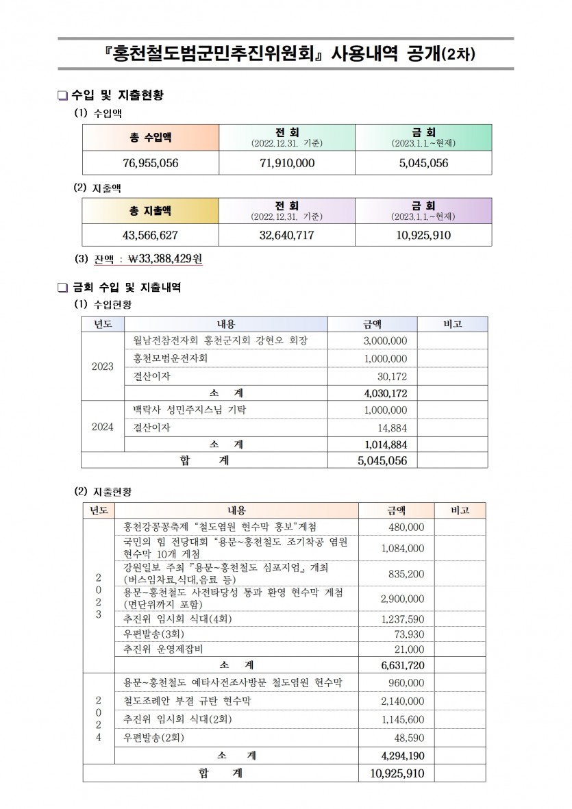 홍천철도범군민추진위원회 사용내역 공개(2차) 페이지 정보 작성자 관리자 댓글 0건 조회 998회 작성일 24-08-07 19:20 본문 홍천철도범군민추진위원회 사용내역 공개(2차) 목록 답변 이전글2024년 연간기부금모금액 및 활용실적 명세서 25.04.04 다음글2023년 연간기부금모금액 및 활용실적 명세서 24.05.01 댓글목록 댓글목록 등록된 댓글이 없습니다.