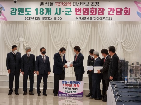 강원도 시·군번영회장 연합회“윤석열 대선후보에게 용문~홍천철도