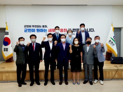 민선 7기 허필홍 군수와 민선 8기 신영재 군수 당선인과, 제10대 강원도의회 신도현 부의장, 제8대 홍천…